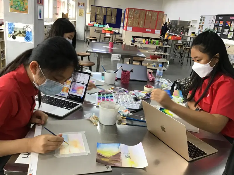 Landscape pieces are one of five major genres found in art. There can be many styles of landscape art from realistic to abstract. These varied pieces were self-selected by students and studied through a series of ‘tryouts’. Part of the IB curriculum is to utilize this process of investigation to experiment with different techniques, then choose the best result for their resolved art piece.