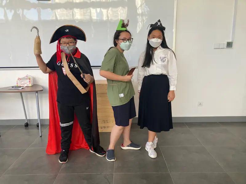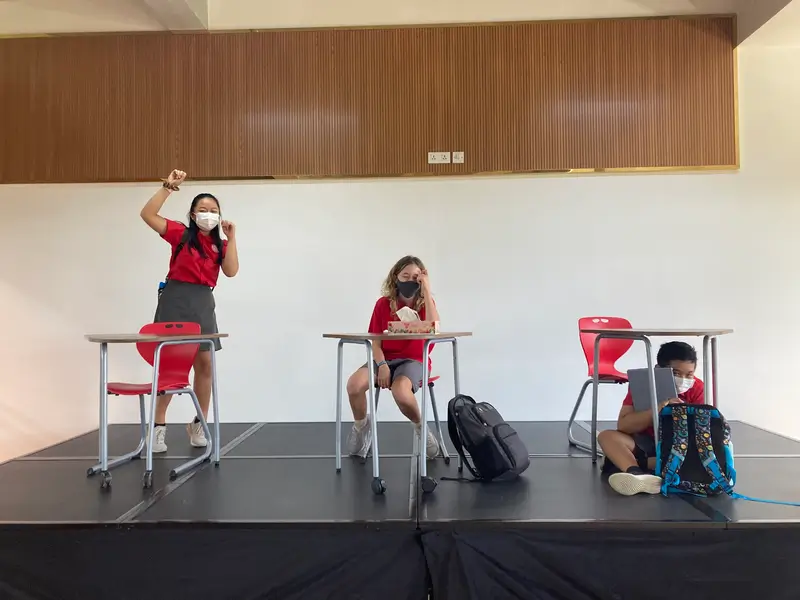 This semester, students started with a review of the fundamentals of drama. They started with revising basic stage terminology and blocking followed by tableau work. Afterward, they began a speech unit which focused on how to use one’s voice to convey both character and emotion. Students exercised their vocal skills by presenting several scripted scenes in class and on stage in the BlackBox theatre. Afterward, they began a cross-curricular Drama and CTF video production unit. Students were tasked with filming a short documentary depicting a famous villain’s side of the story. In this project, in groups, students were required to write a script, create a storyboard, design costumes/props, film scenes and then edit the clips for a final product.