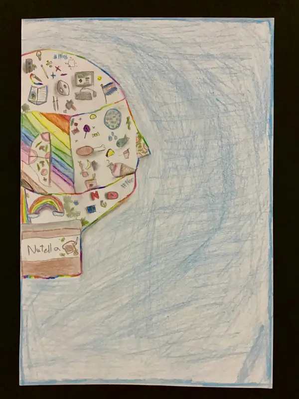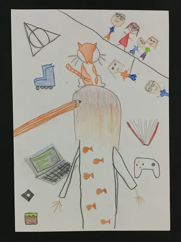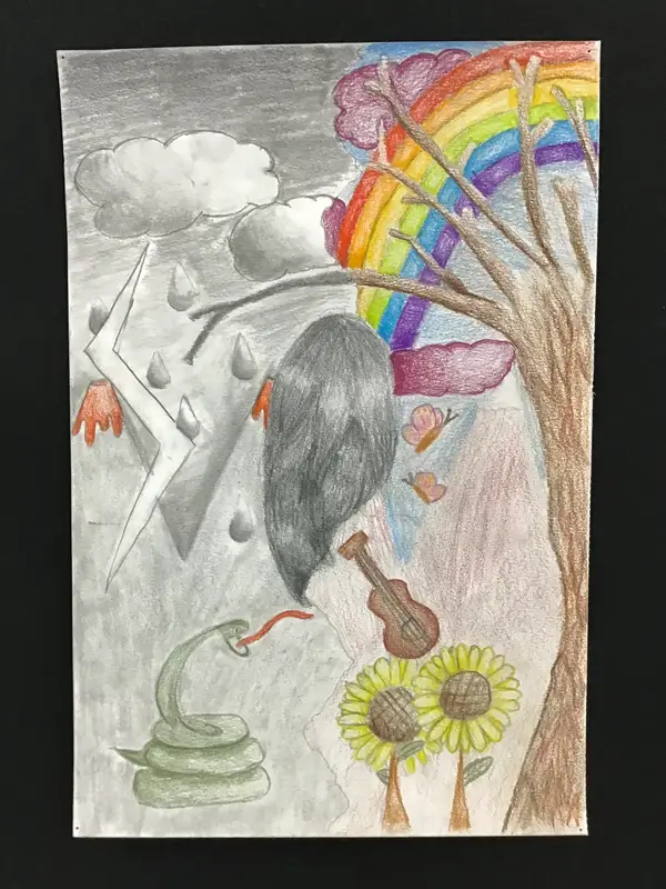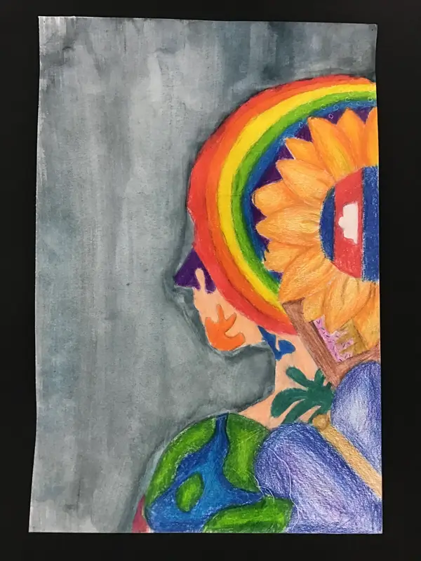 Portraiture, whether realistic or abstract, is one of five major genres found in art. These varied pieces hold one common thread, some form of profile or human form is the focus or emphasis of the piece. Students then self-selected visual symbols to convey their personal identity. They finished their work with some form of value (shading) whether in color or in graphite.